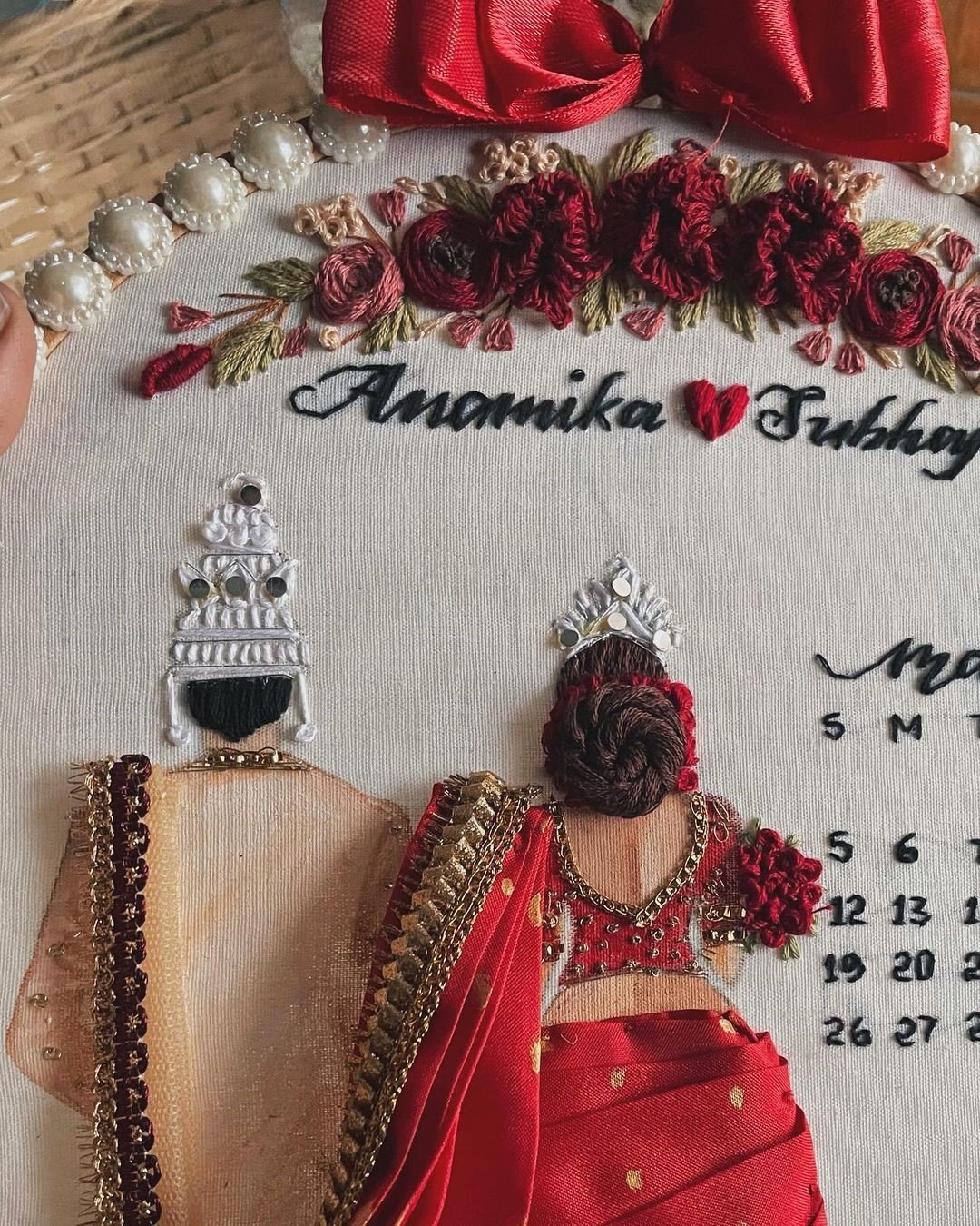 Celebrate your love with the “Bright Maroon Saree Back-Facing Wedding Embroidery Handmade Gift.” Order now to create a personalized and timeless keepsake that will be cherished forever! 🎨💍❤️