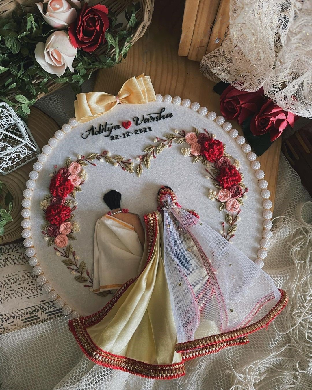 - Elegant Design: The heart motifs and beautiful saree draping evoke a sense of tradition and intimacy, making it a timeless piece that seamlessly fits into any interior design while celebrating your love story.