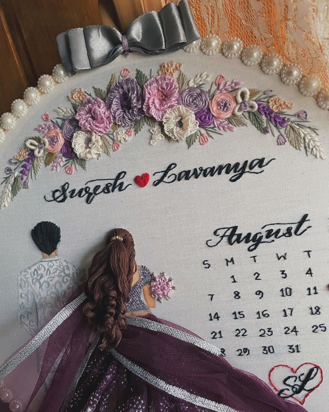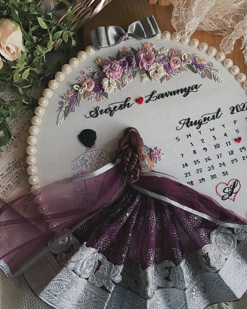 Introducing the “Purple Back-Facing Wedding Embroidery Handmade Gift” – a stunning embroidery piece that beautifully encapsulates the essence of your wedding day. Featuring a back-facing silhouette of the couple adorned in elegant purple attire, this exquisite keepsake is perfect for newlyweds or as a heartfelt anniversary gift.