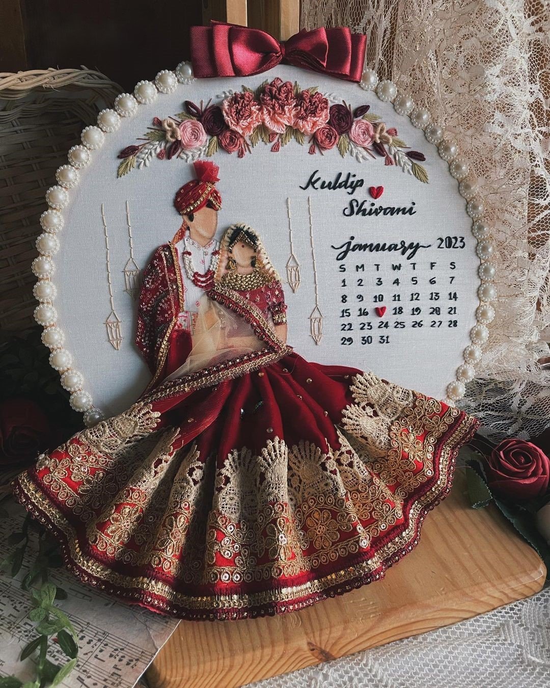 Introducing the “Red Wine Color Front-Facing Wedding Embroidery Handmade Gift” – an exquisite embroidery piece that beautifully captures the essence of your wedding day. Featuring a front-facing silhouette of the couple adorned in a rich red wine hue, this stunning keepsake is perfect for newlyweds or as a heartfelt anniversary gift.