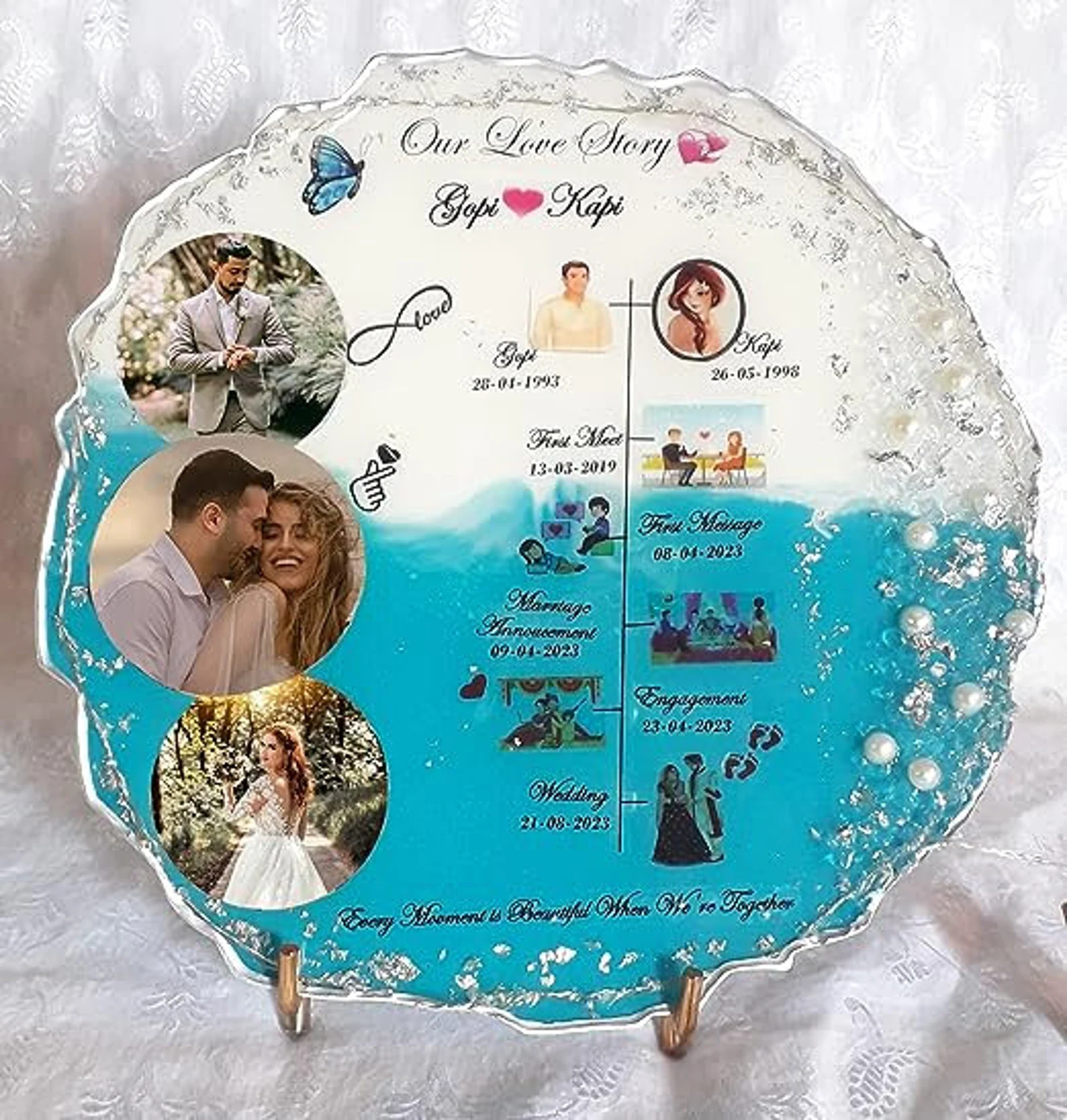 - Custom Photo Timeline: The plaque features a timeline layout to showcase a sequence of your favorite photos, capturing the key moments in your relationship.